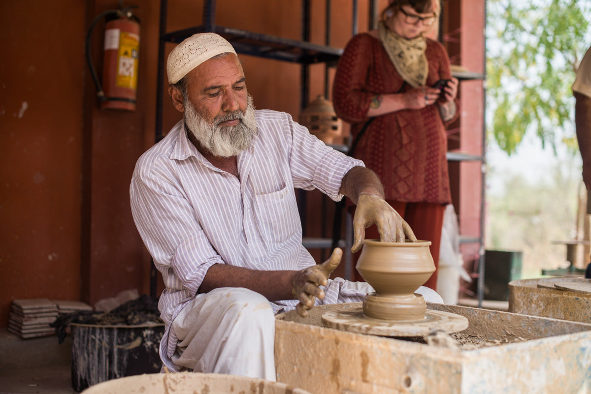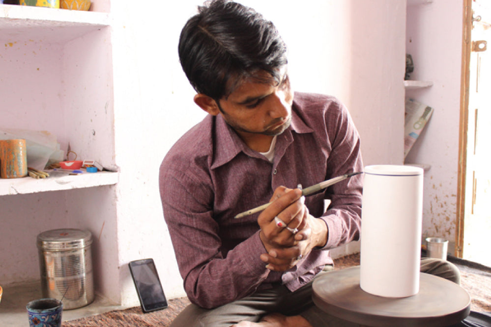 Blue Pottery Ceramics, an exquisite art form from Jaipur, embodies master craftsmanship. With skillfully sculpted designs, intricate hand-painted original patterns, and the use of lead-free glaze, this art form showcases the essence of age-old Indian pottery. In Rajasthan, artisans utilize traditional techniques, such as the potter's wheel, handmade molds, and their own hands, to transform natural clay into functional works of art with a beautiful polished finish.
