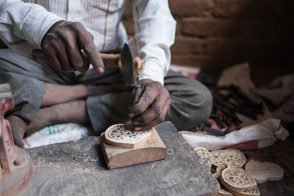 Wood carving is a traditional craft in remote villages of North Central India, where artisans hand carve sustainably sourced wood into decorative and functional items. The making of these products preserves these art forms and benefits the artisan communities with long term employment and community development opportunities.