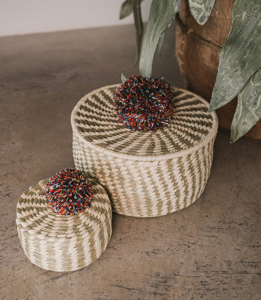Pom Pom Large Storage Basket with Lid - Hand Woven