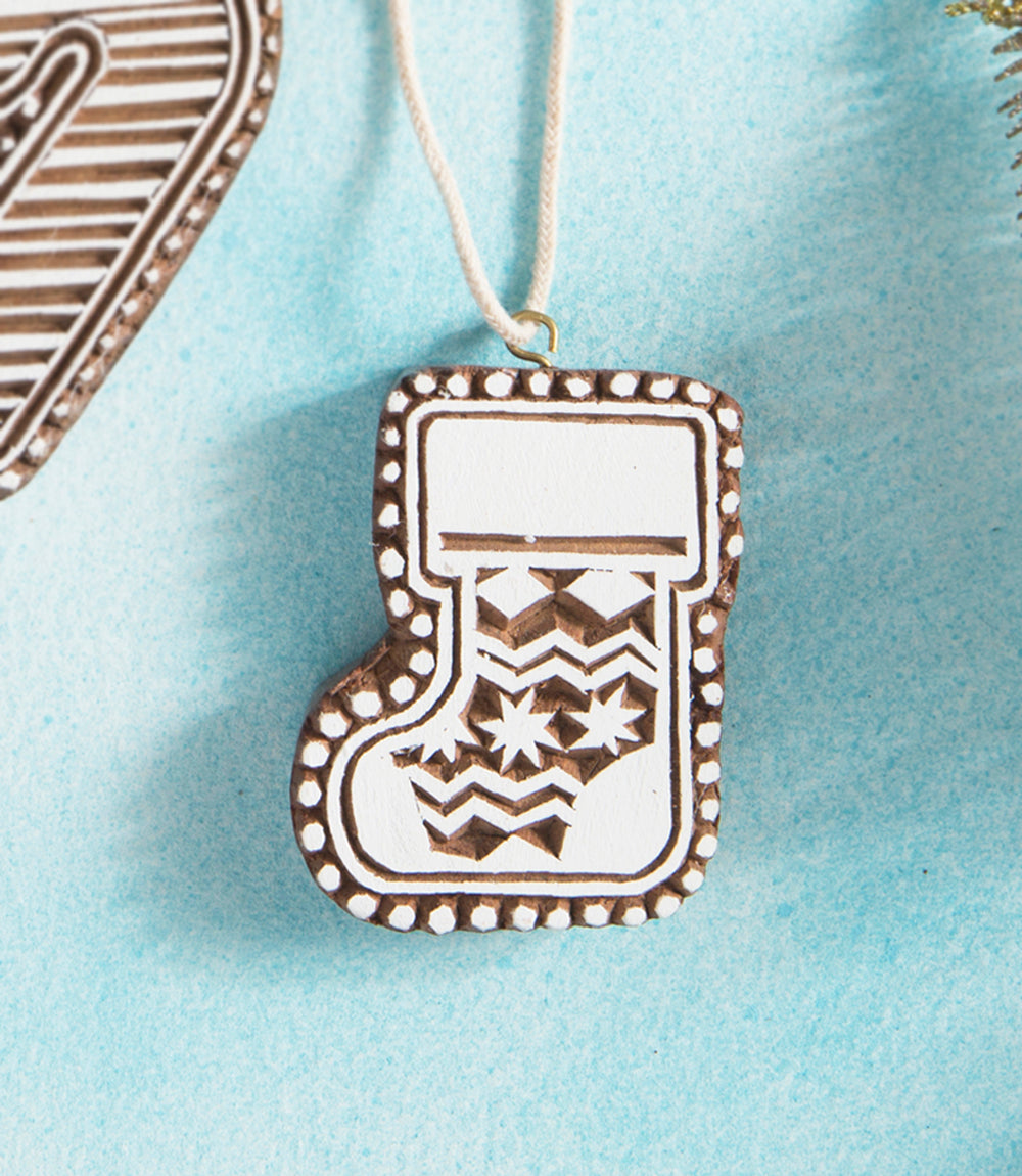 Hima Bindu Stocking Ornament - Hand Carved Sheesham