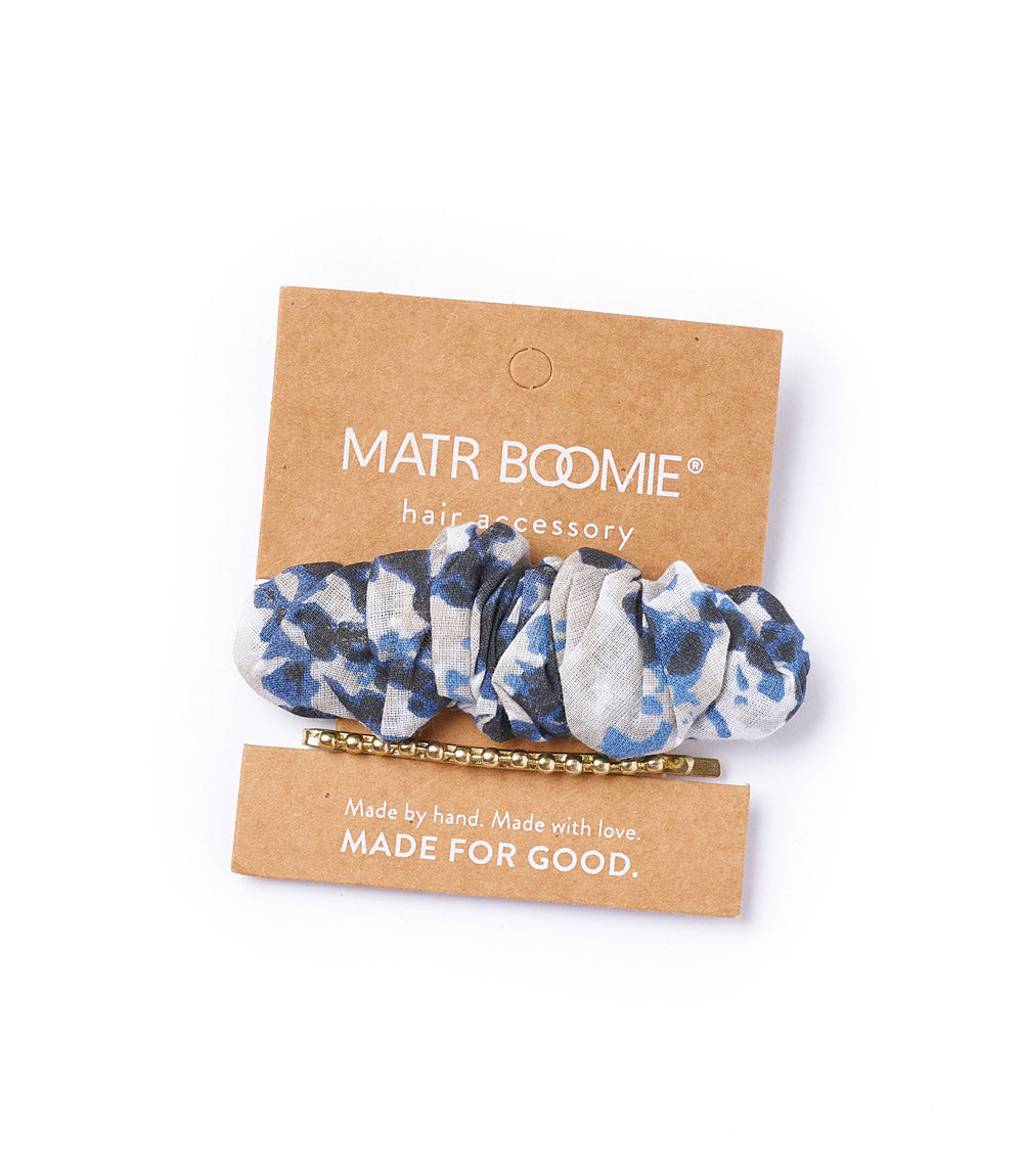This set of 2 hair pins features a handcrafted gold tone beaded bobby pin and a scrunch barrette covered in upcycled sari fabric. Saris are traditional everyday garments in India, worn by wrapping meters of fabric around the body and fastened into place. They come in a variety of colors and patterns. Artisans repurpose discarded sari fabrics to create one-of-a kind accessories in modern styles. This set would make a great gift for an eco-conscious shopper who appreciates this process of creating beautiful things from discarded materials, keeping them from landfills and giving them a new purpose! *Due to the upcycled and handmade nature of these products, variation is expected and colors and patterns cannot be chosen. Photos are just an example and items may vary from photos shown
